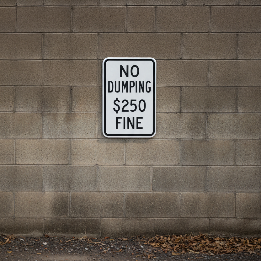 The No Dumping $250 Fine is designed to provide exceptional performance and longevity in a variety of environments. this sign component ensures strength and weather resistance, making it ideal for both indoor and outdoor applications. With a size specification of 12X18, it fits standard installation requirements while offering versatility for different mounting setups. Whether you’re updating an existing setup or building new signage, this item ensures a reliable, high-quality finish that represents your brand or message clearly and professionally.