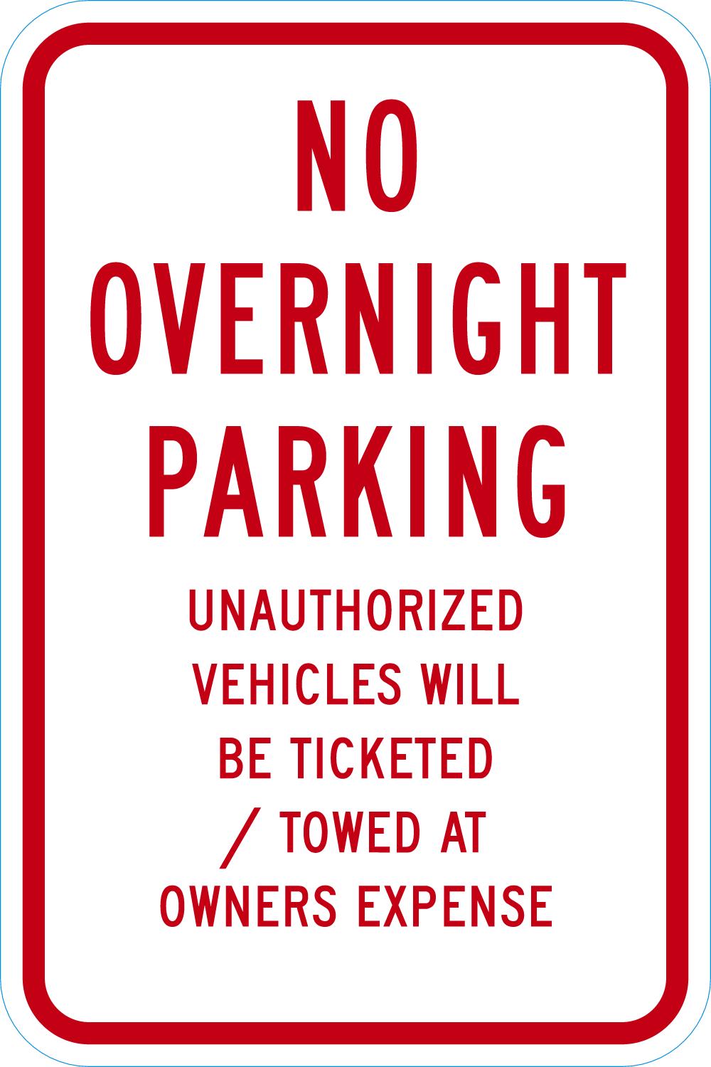 No Overnight Parking Unauthorized Vehicles Will Be Ticketed