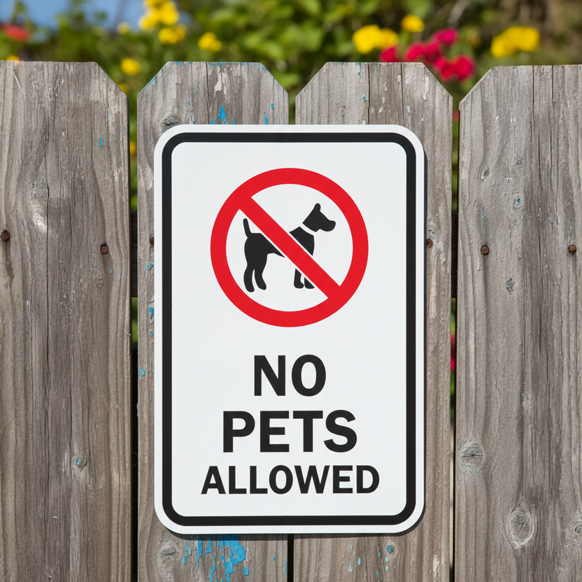 The No Pets Allowed (W/Sym) is designed to provide exceptional performance and longevity in a variety of environments. this sign component ensures strength and weather resistance, making it ideal for both indoor and outdoor applications. With a size specification of 12X18, it fits standard installation requirements while offering versatility for different mounting setups. Whether you’re updating an existing setup or building new signage, this item ensures a reliable, high-quality finish that represents your brand or message clearly and professionally.