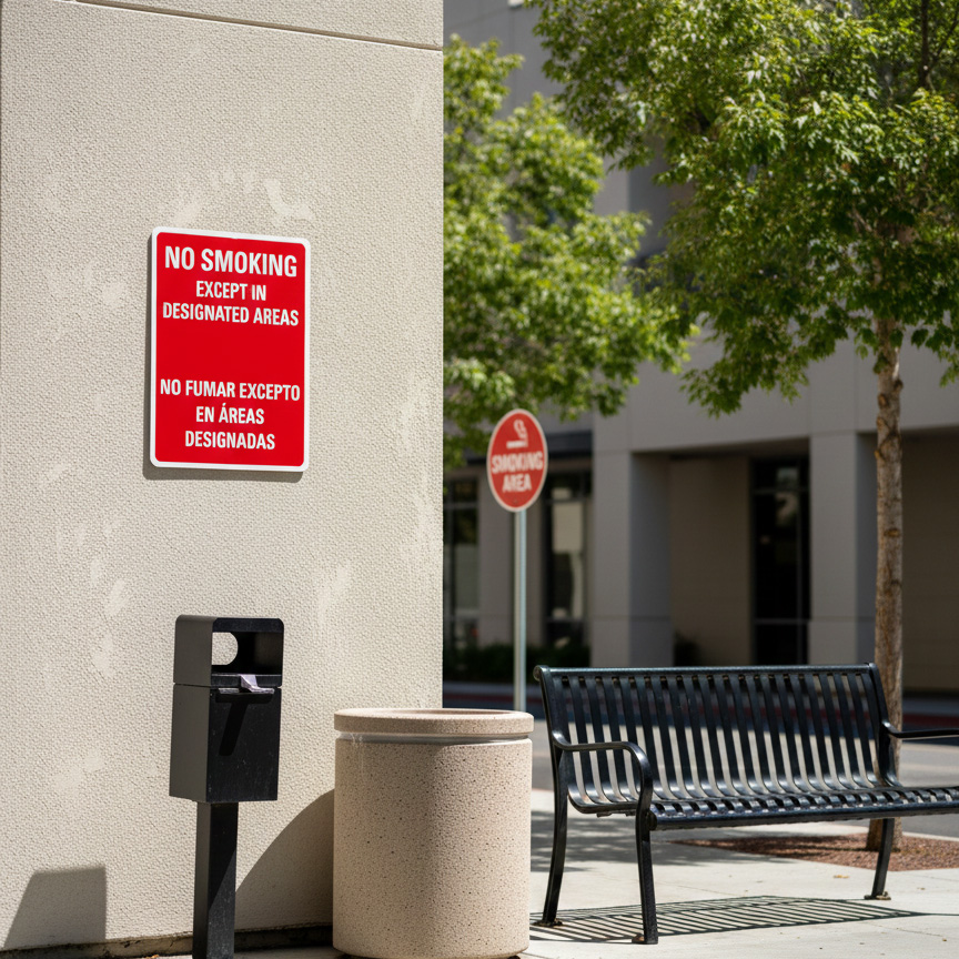 The No Smoking Except In Designated Areas No Fumar Excepto En is designed to provide exceptional performance and longevity in a variety of environments. this sign component ensures strength and weather resistance, making it ideal for both indoor and outdoor applications. With a size specification of 10X14, it fits standard installation requirements while offering versatility for different mounting setups. Whether you’re updating an existing setup or building new signage, this item ensures a reliable, high-quality finish that represents your brand or message clearly and professionally.
