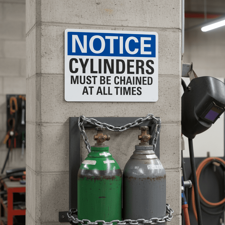 Notice Cylinders Must Be Chained At All Times