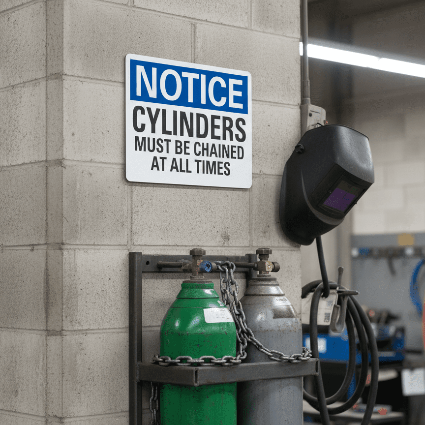 The Notice Cylinders Must Be Chained At All Times is designed to provide exceptional performance and longevity in a variety of environments. this sign component ensures strength and weather resistance, making it ideal for both indoor and outdoor applications. With a size specification of 10X7, 14X10, 7X5, it fits standard installation requirements while offering versatility for different mounting setups. Whether you’re updating an existing setup or building new signage, this item ensures a reliable, high-quality finish that represents your brand or message clearly and professionally.