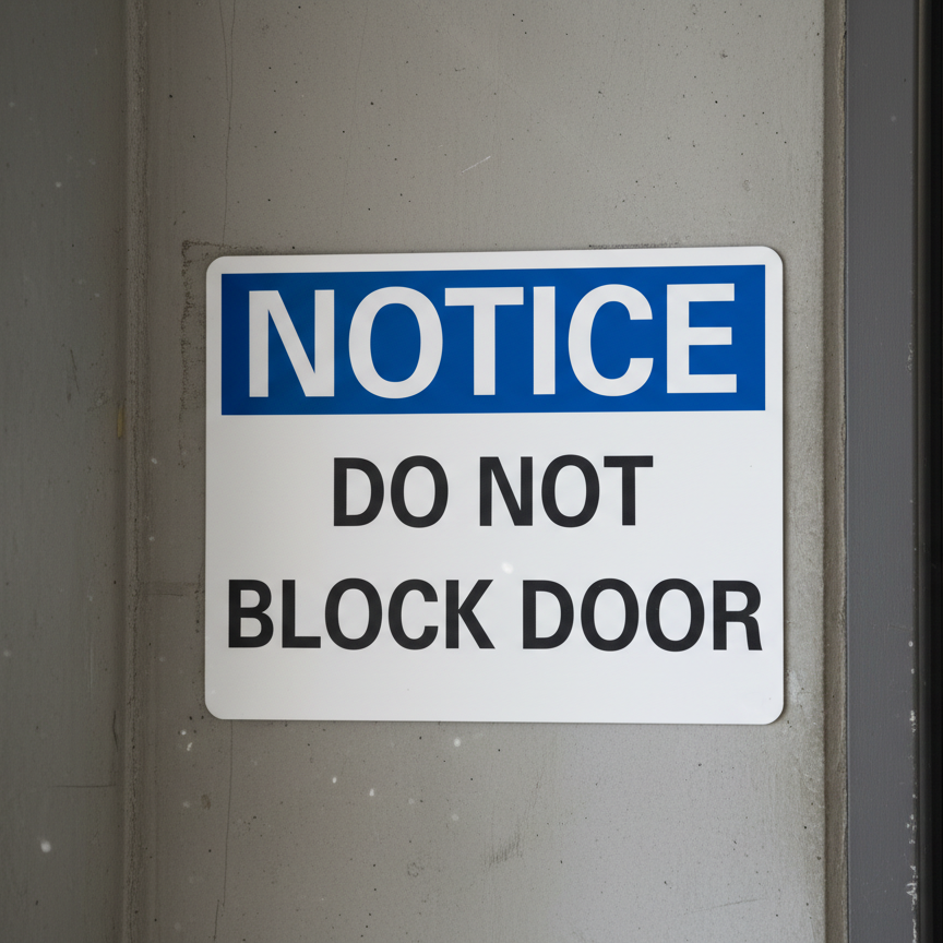 The Notice Do not block door is designed to provide exceptional performance and longevity in a variety of environments. this sign component ensures strength and weather resistance, making it ideal for both indoor and outdoor applications. With a size specification of 10X7, 14X10, 5X3.5, 7X5, it fits standard installation requirements while offering versatility for different mounting setups. Whether you’re updating an existing setup or building new signage, this item ensures a reliable, high-quality finish that represents your brand or message clearly and professionally.