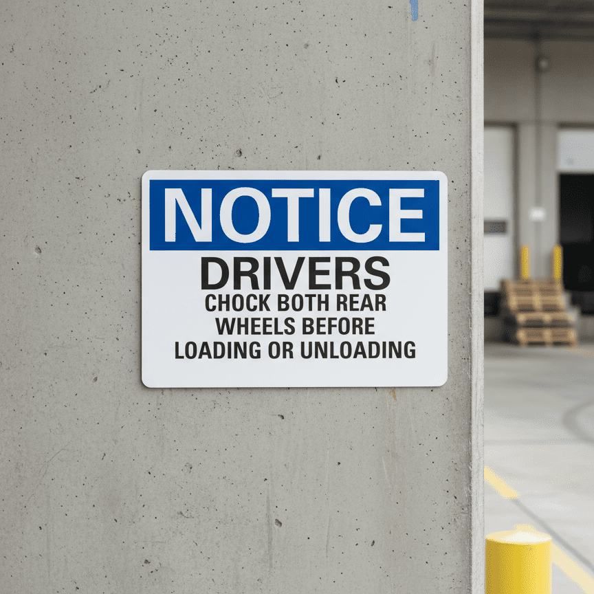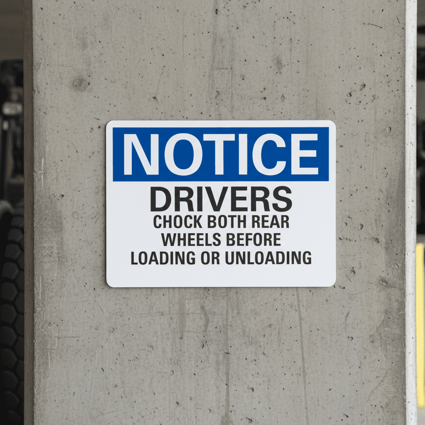 The Notice Drivers Chock Both Rear Wheels Before is designed to provide exceptional performance and longevity in a variety of environments. this sign component ensures strength and weather resistance, making it ideal for both indoor and outdoor applications. With a size specification of 10X7, 14X10, 7X5, it fits standard installation requirements while offering versatility for different mounting setups. Whether you’re updating an existing setup or building new signage, this item ensures a reliable, high-quality finish that represents your brand or message clearly and professionally.