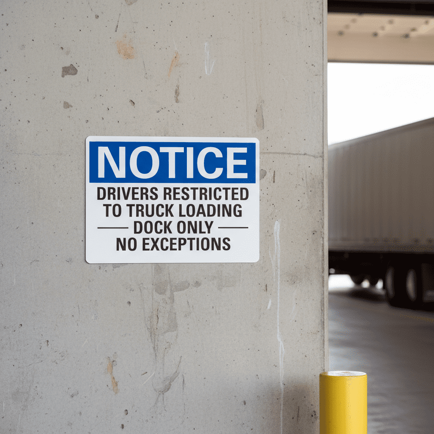Notice Drivers Restricted To Truck Loading Dock is built with quality materials for lasting performance.