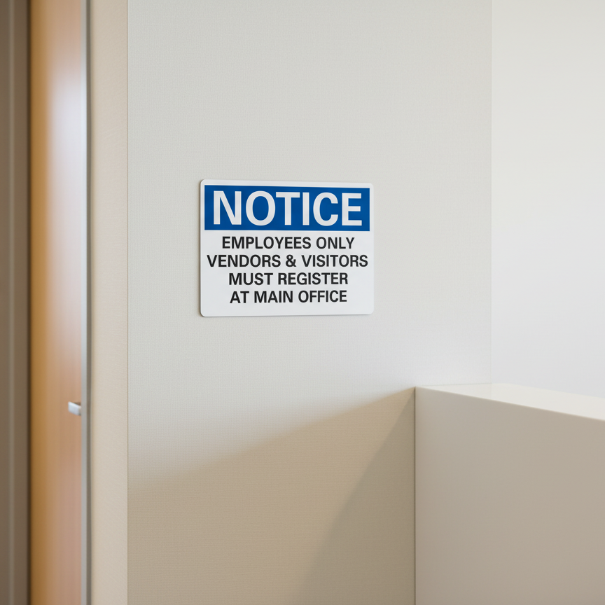 The Notice Employees Only Vendors & Visitors Must is designed to provide exceptional performance and longevity in a variety of environments. this sign component ensures strength and weather resistance, making it ideal for both indoor and outdoor applications. With a size specification of 10X7, 14X10, 7X5, it fits standard installation requirements while offering versatility for different mounting setups. Whether you’re updating an existing setup or building new signage, this item ensures a reliable, high-quality finish that represents your brand or message clearly and professionally.