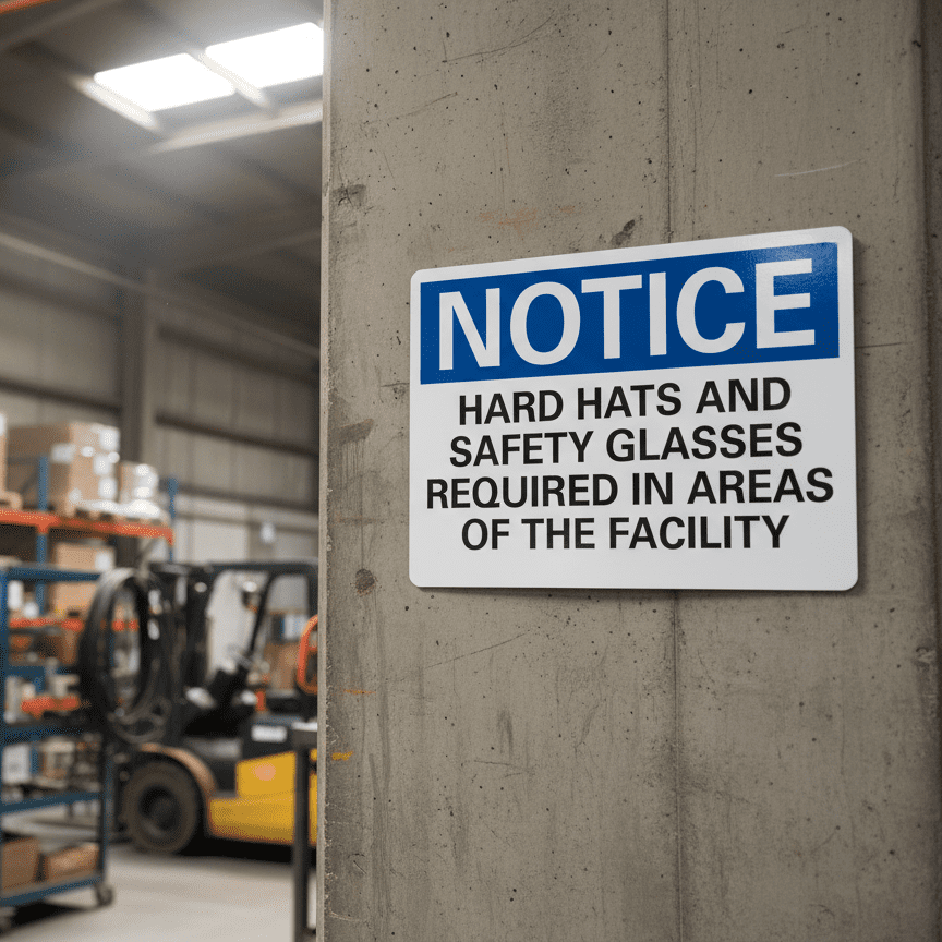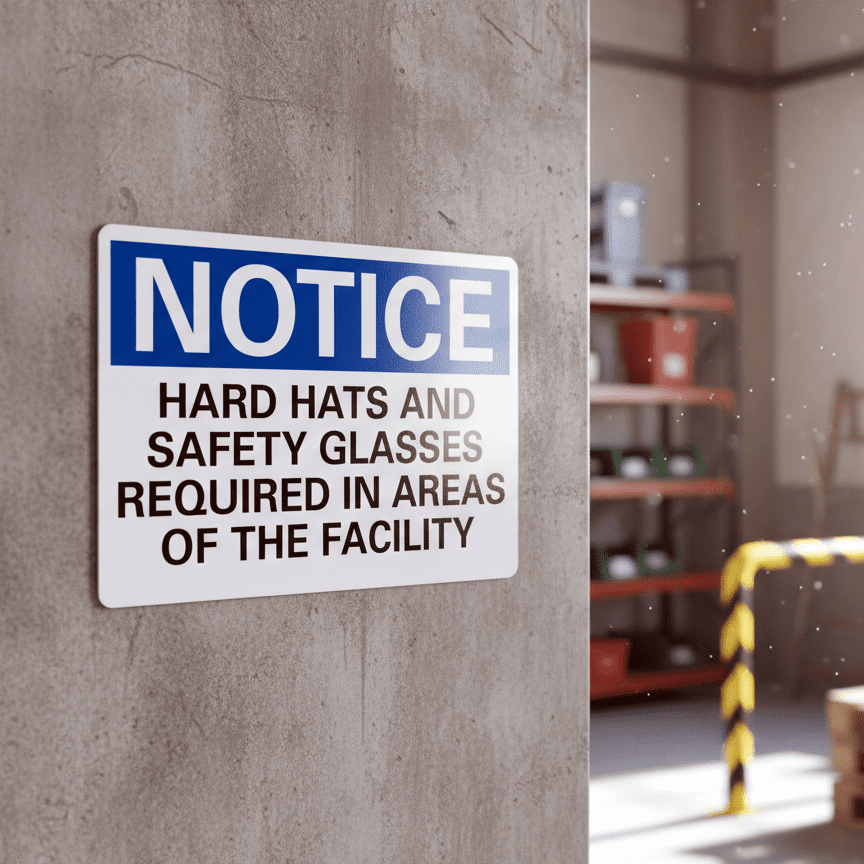 Notice Hard Hats And Safety Glasses Required