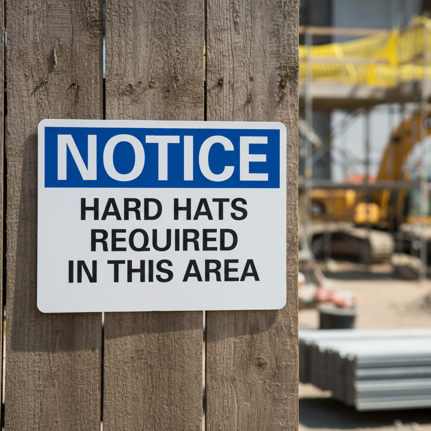 The Notice Hard hats required in this area is designed to provide exceptional performance and longevity in a variety of environments. this sign component ensures strength and weather resistance, making it ideal for both indoor and outdoor applications. With a size specification of 10X7, 14X10, 5X3.5, 7X5, it fits standard installation requirements while offering versatility for different mounting setups. Whether you’re updating an existing setup or building new signage, this item ensures a reliable, high-quality finish that represents your brand or message clearly and professionally.
