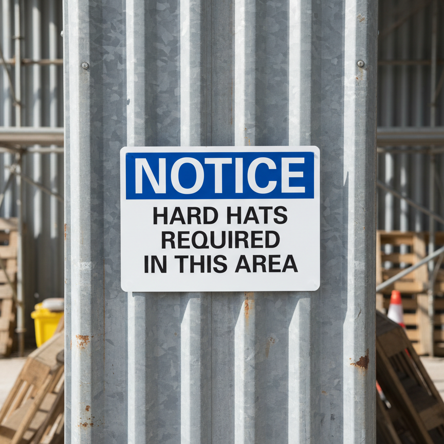 Notice Hard hats required in this area is built with quality materials for lasting performance.
