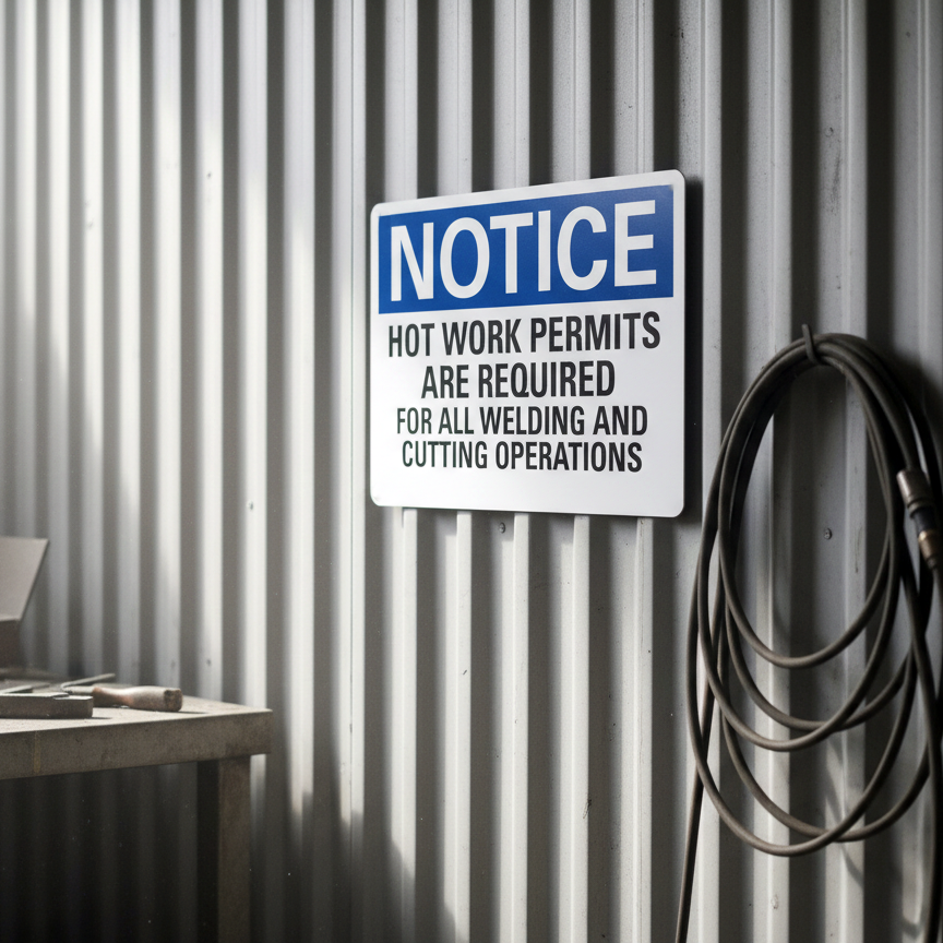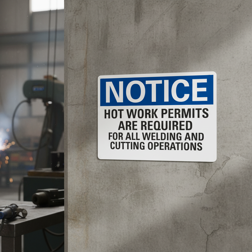The Notice Hot Work Permits Are Required For All is designed to provide exceptional performance and longevity in a variety of environments. this sign component ensures strength and weather resistance, making it ideal for both indoor and outdoor applications. With a size specification of 10X7, 14X10, 7X5, it fits standard installation requirements while offering versatility for different mounting setups. Whether you’re updating an existing setup or building new signage, this item ensures a reliable, high-quality finish that represents your brand or message clearly and professionally.