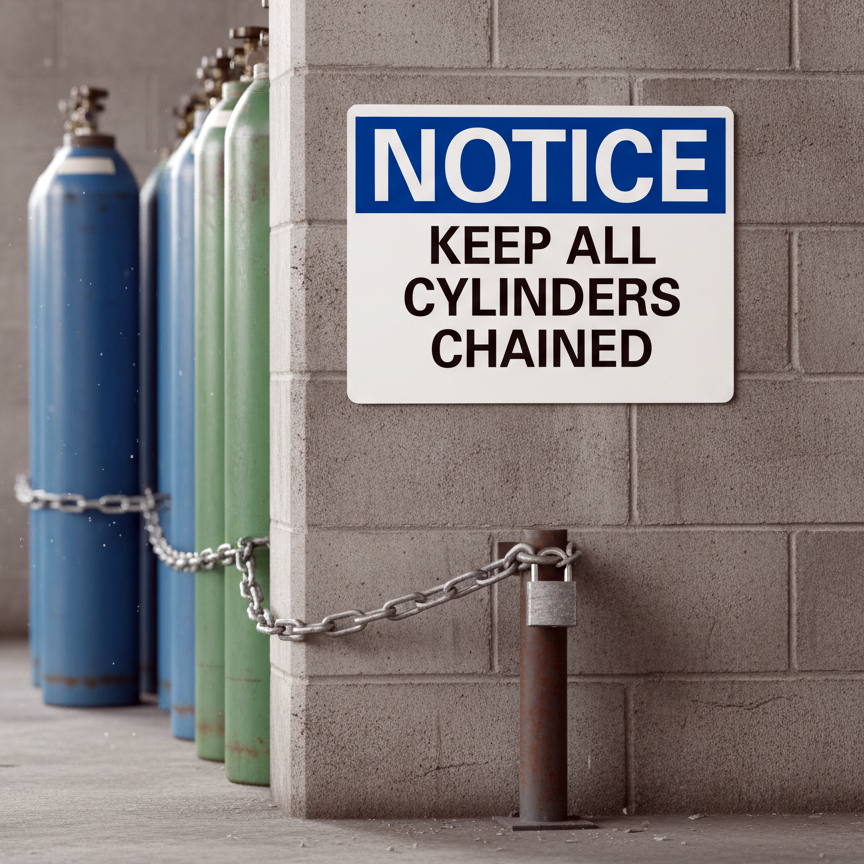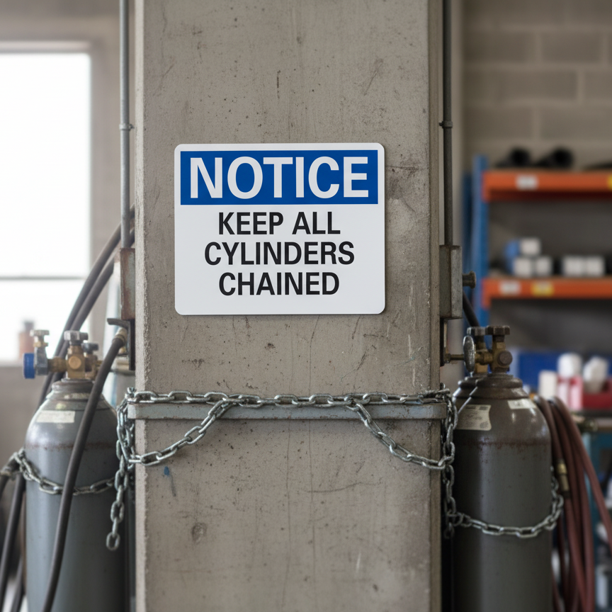 The Notice Keep All Cylinders Chained is designed to provide exceptional performance and longevity in a variety of environments. this sign component ensures strength and weather resistance, making it ideal for both indoor and outdoor applications. With a size specification of 10X7, 14X10, 7X5, it fits standard installation requirements while offering versatility for different mounting setups. Whether you’re updating an existing setup or building new signage, this item ensures a reliable, high-quality finish that represents your brand or message clearly and professionally.