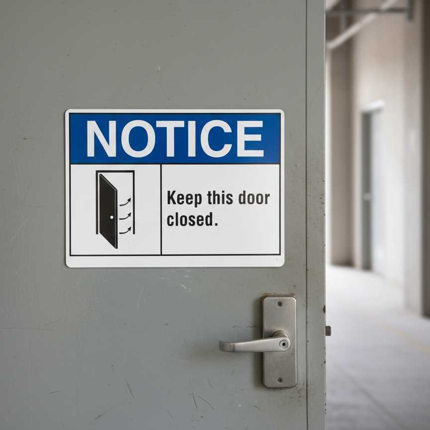 Notice Keep this door closed is built with quality materials for lasting performance.