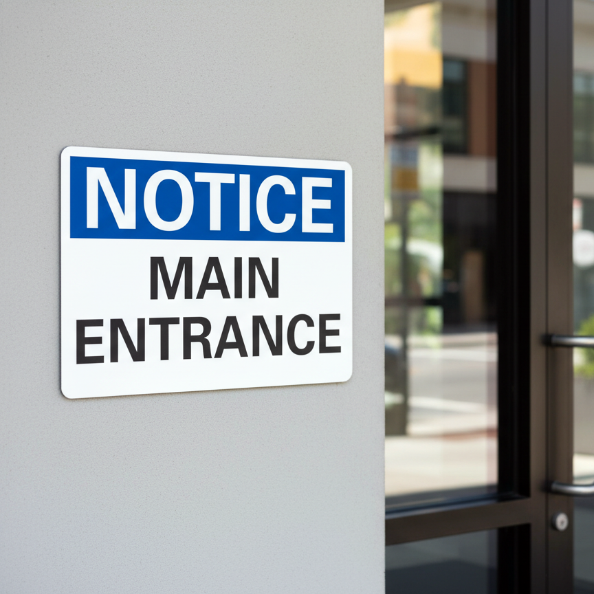 The Notice Main Entrance is designed to provide exceptional performance and longevity in a variety of environments. this sign component ensures strength and weather resistance, making it ideal for both indoor and outdoor applications. With a size specification of 10X7, 14X10, 7X5, it fits standard installation requirements while offering versatility for different mounting setups. Whether you’re updating an existing setup or building new signage, this item ensures a reliable, high-quality finish that represents your brand or message clearly and professionally.