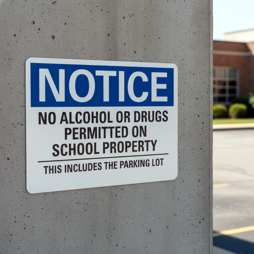 The Notice No Alcohol Or Drugs Permitted On School is designed to provide exceptional performance and longevity in a variety of environments. this sign component ensures strength and weather resistance, making it ideal for both indoor and outdoor applications. With a size specification of 14X10, it fits standard installation requirements while offering versatility for different mounting setups. Whether you’re updating an existing setup or building new signage, this item ensures a reliable, high-quality finish that represents your brand or message clearly and professionally.