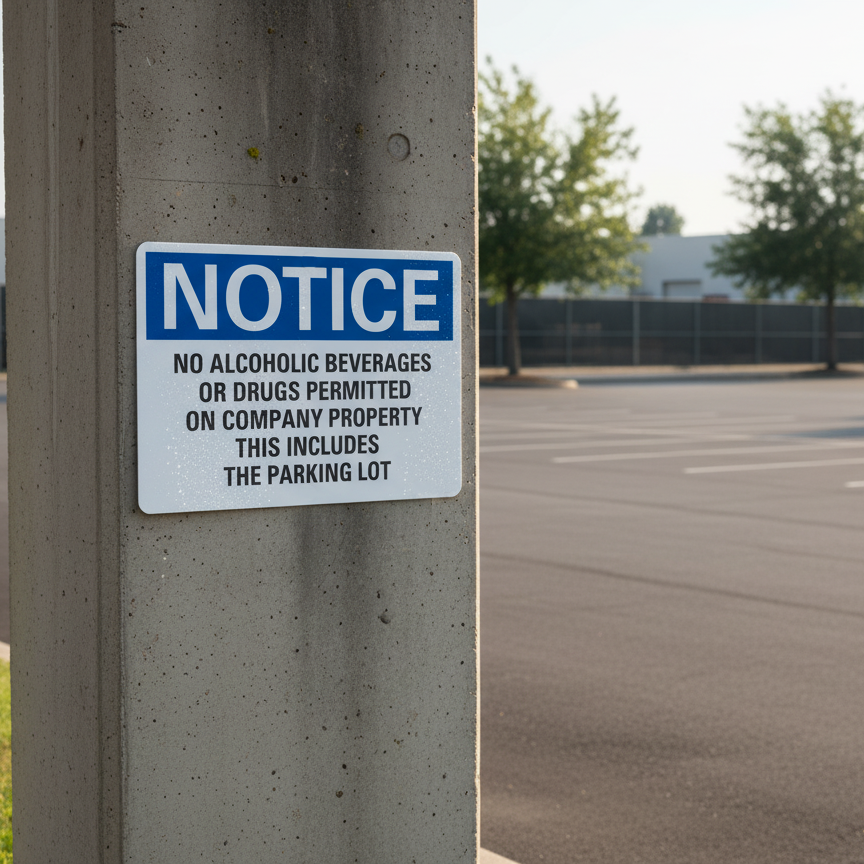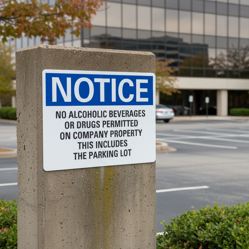 Notice No alcoholic beverages or drugs permitted on