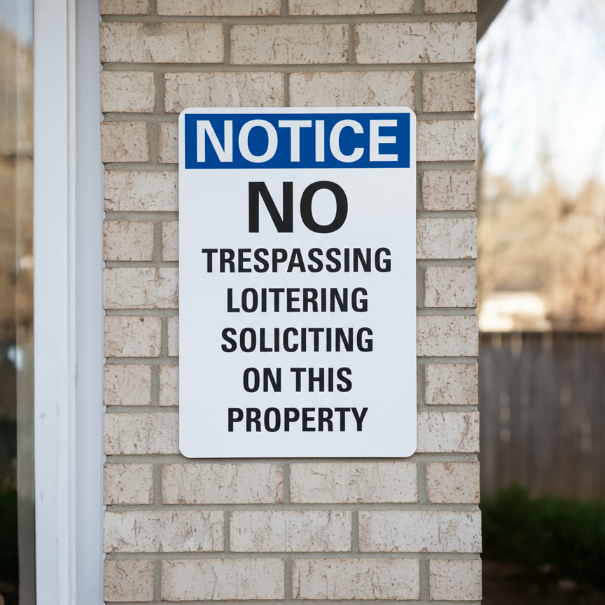 The Notice No trespassing loitering soliciting on this is designed to provide exceptional performance and longevity in a variety of environments. this sign component ensures strength and weather resistance, making it ideal for both indoor and outdoor applications. With a size specification of 10X14, 10X7, 14X10, 7X10, 5X3.5, 7X5, it fits standard installation requirements while offering versatility for different mounting setups. Whether you’re updating an existing setup or building new signage, this item ensures a reliable, high-quality finish that represents your brand or message clearly and professionally.