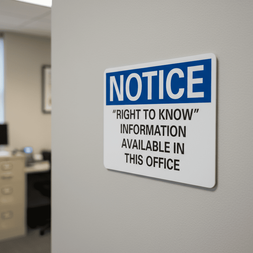 The Notice Right to know information available in this is designed to provide exceptional performance and longevity in a variety of environments. this sign component ensures strength and weather resistance, making it ideal for both indoor and outdoor applications. With a size specification of 10X7, 7X5, it fits standard installation requirements while offering versatility for different mounting setups. Whether you’re updating an existing setup or building new signage, this item ensures a reliable, high-quality finish that represents your brand or message clearly and professionally.