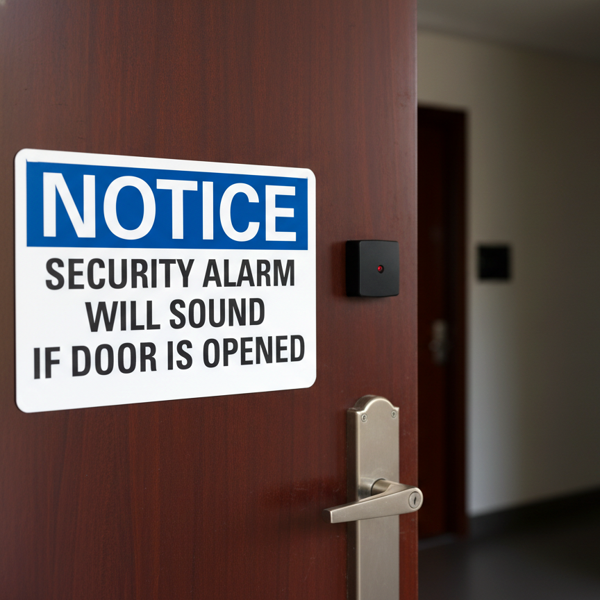 Notice Security Alarm Will Sound If Door Is Opened