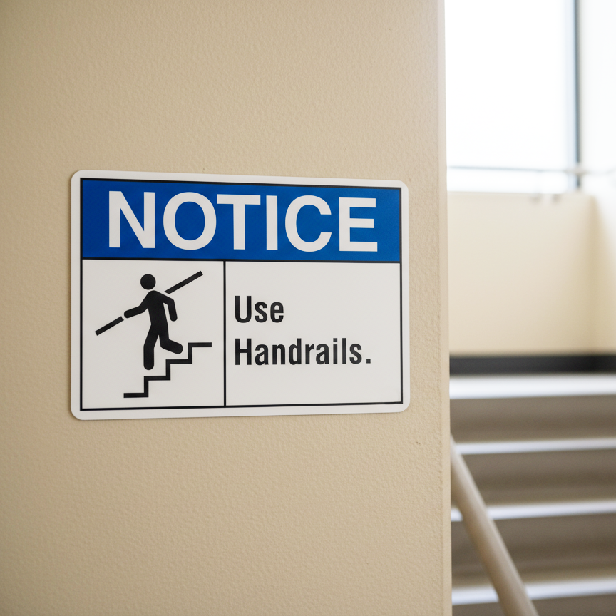 The Notice Use handrail is designed to provide exceptional performance and longevity in a variety of environments. this sign component ensures strength and weather resistance, making it ideal for both indoor and outdoor applications. With a size specification of 10X7, 14X10, 5X3.5, 7X5, it fits standard installation requirements while offering versatility for different mounting setups. Whether you’re updating an existing setup or building new signage, this item ensures a reliable, high-quality finish that represents your brand or message clearly and professionally.