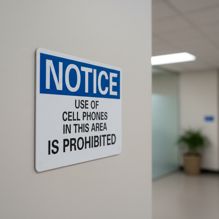 The Notice Use of cell phones in this area is prohibited is designed to provide exceptional performance and longevity in a variety of environments. this sign component ensures strength and weather resistance, making it ideal for both indoor and outdoor applications. With a size specification of 10X7, 14X10, 5X3.5, 7X5, it fits standard installation requirements while offering versatility for different mounting setups. Whether you’re updating an existing setup or building new signage, this item ensures a reliable, high-quality finish that represents your brand or message clearly and professionally.