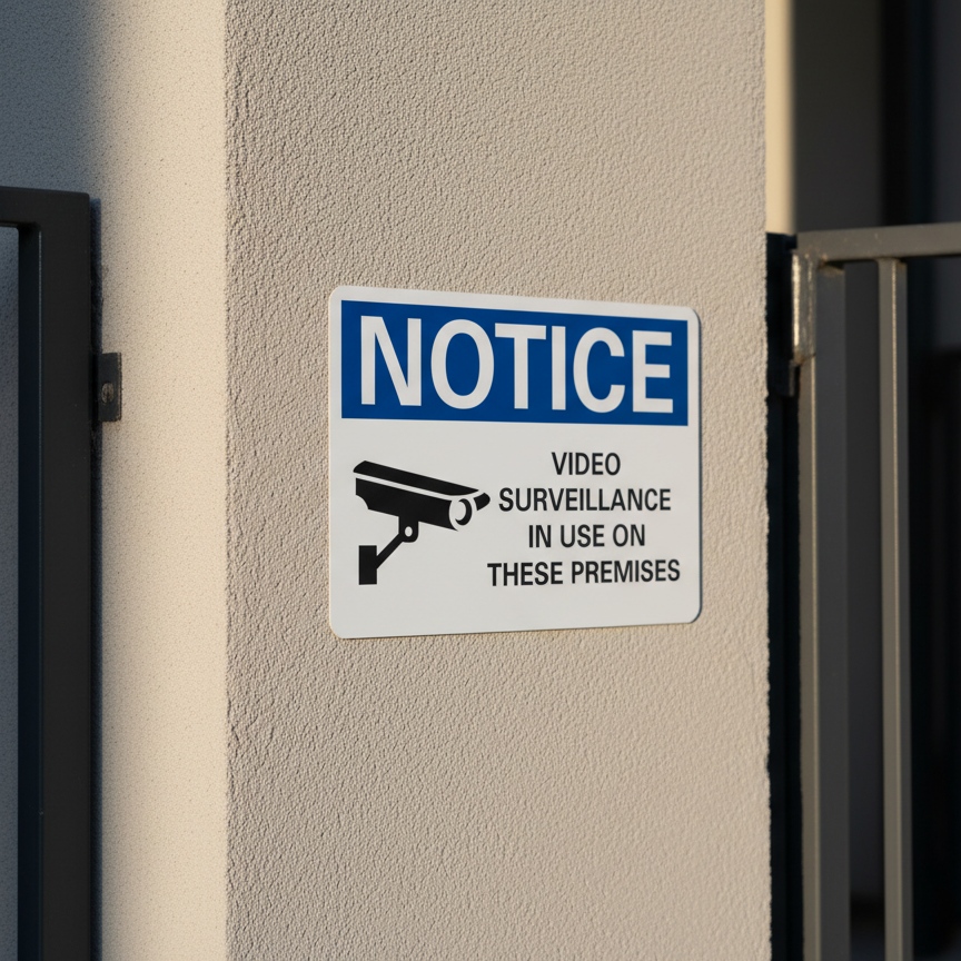 The Notice Video surveillance in use on these premises is designed to provide exceptional performance and longevity in a variety of environments. this sign component ensures strength and weather resistance, making it ideal for both indoor and outdoor applications. With a size specification of 10X7, 14X10, 5X3.5, 7X5, it fits standard installation requirements while offering versatility for different mounting setups. Whether you’re updating an existing setup or building new signage, this item ensures a reliable, high-quality finish that represents your brand or message clearly and professionally.