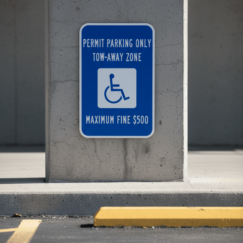 Permit Parking Only Tow-Away Zone (HC Sym) Maximum Fine $500