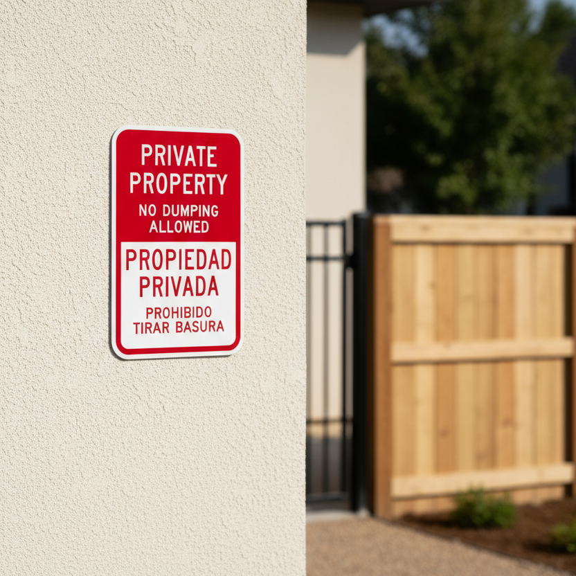 The Private Property No Dumping Allowed Propiedad Privada is designed to provide exceptional performance and longevity in a variety of environments. this sign component ensures strength and weather resistance, making it ideal for both indoor and outdoor applications. With a size specification of 12X18, it fits standard installation requirements while offering versatility for different mounting setups. Whether you’re updating an existing setup or building new signage, this item ensures a reliable, high-quality finish that represents your brand or message clearly and professionally.