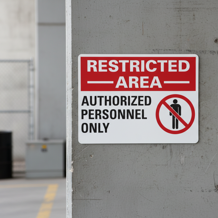 The Restricted Area Authorized Personnel Only (W/Sym) is designed to provide exceptional performance and longevity in a variety of environments. this sign component ensures strength and weather resistance, making it ideal for both indoor and outdoor applications. With a size specification of 10X7, 14X10, 7X5, it fits standard installation requirements while offering versatility for different mounting setups. Whether you’re updating an existing setup or building new signage, this item ensures a reliable, high-quality finish that represents your brand or message clearly and professionally.