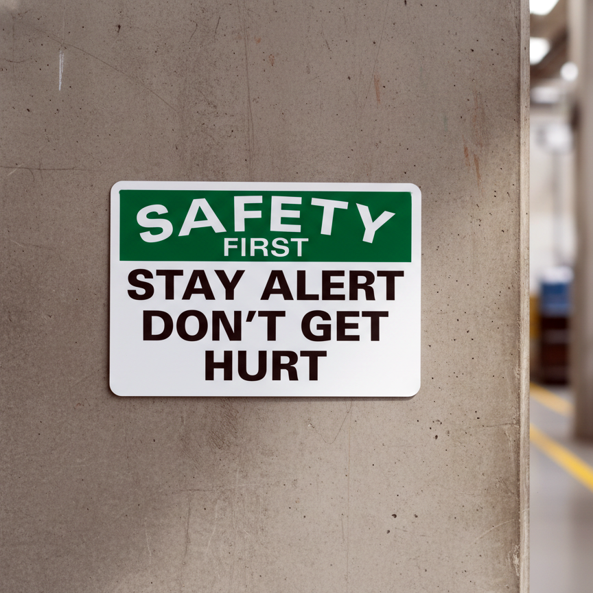 The Safety First Stay Alert Don’T Get Hurt is designed to provide exceptional performance and longevity in a variety of environments. this sign component ensures strength and weather resistance, making it ideal for both indoor and outdoor applications. With a size specification of 10X7, 14X10, 7X5, it fits standard installation requirements while offering versatility for different mounting setups. Whether you’re updating an existing setup or building new signage, this item ensures a reliable, high-quality finish that represents your brand or message clearly and professionally.