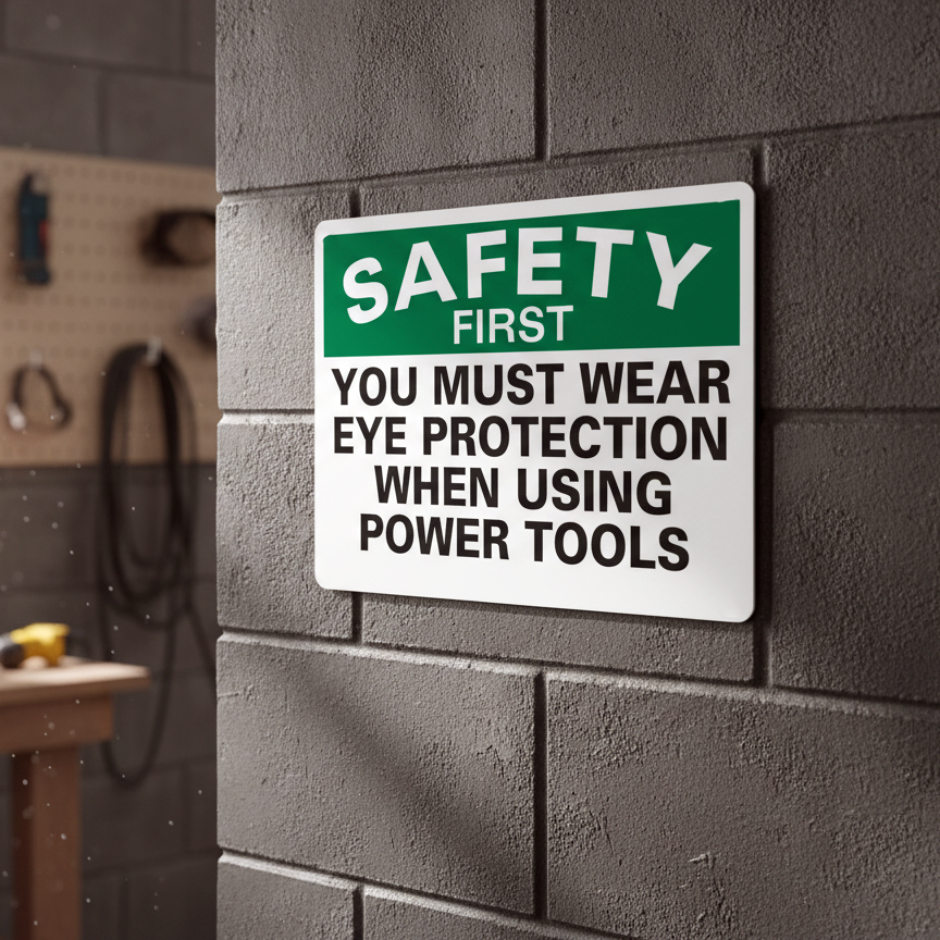The Safety First You Must Wear Eye Protection When is designed to provide exceptional performance and longevity in a variety of environments. this sign component ensures strength and weather resistance, making it ideal for both indoor and outdoor applications. With a size specification of 10X7, 14X10, 7X5, it fits standard installation requirements while offering versatility for different mounting setups. Whether you’re updating an existing setup or building new signage, this item ensures a reliable, high-quality finish that represents your brand or message clearly and professionally.
