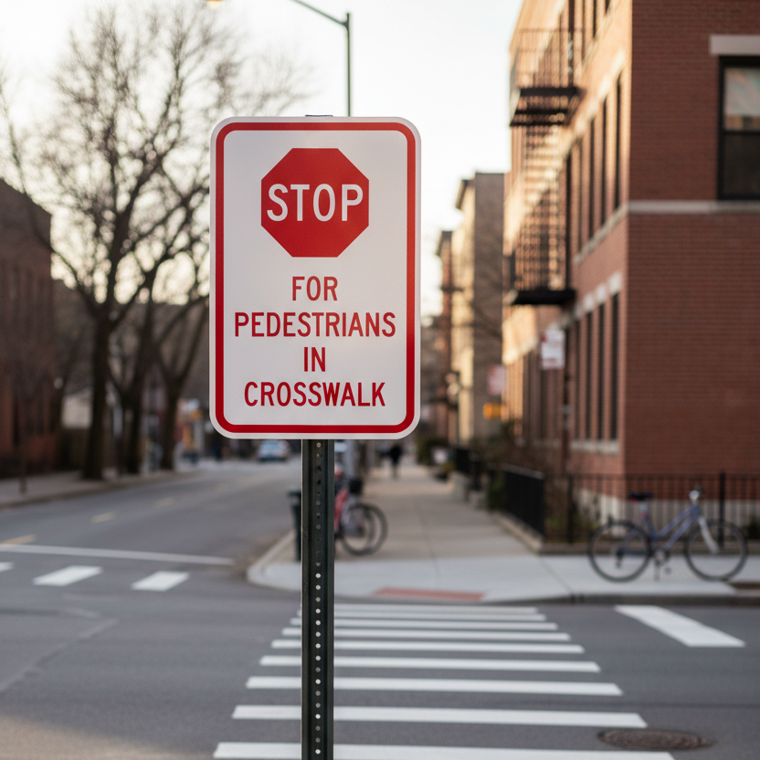 Stop For Pedestrians In Crosswalk (W/Sym)