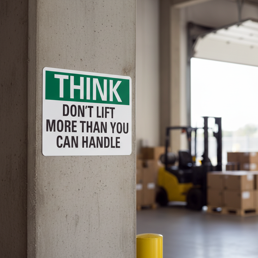 The Think Don’T Lift More Than You Can Handle is designed to provide exceptional performance and longevity in a variety of environments. this sign component ensures strength and weather resistance, making it ideal for both indoor and outdoor applications. With a size specification of 10X7, 14X10, 7X5, it fits standard installation requirements while offering versatility for different mounting setups. Whether you’re updating an existing setup or building new signage, this item ensures a reliable, high-quality finish that represents your brand or message clearly and professionally.