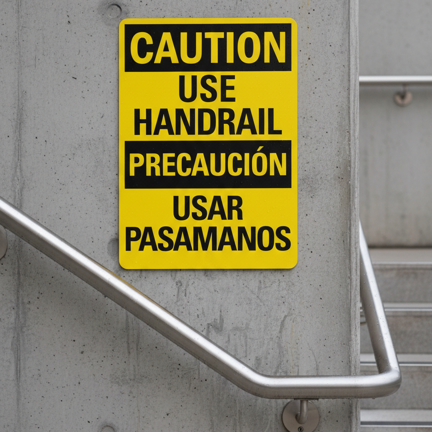 The Use Handrail/Usar Pasamanos is designed to provide exceptional performance and longevity in a variety of environments. this sign component ensures strength and weather resistance, making it ideal for both indoor and outdoor applications. With a size specification of 10X14, it fits standard installation requirements while offering versatility for different mounting setups. Whether you’re updating an existing setup or building new signage, this item ensures a reliable, high-quality finish that represents your brand or message clearly and professionally.