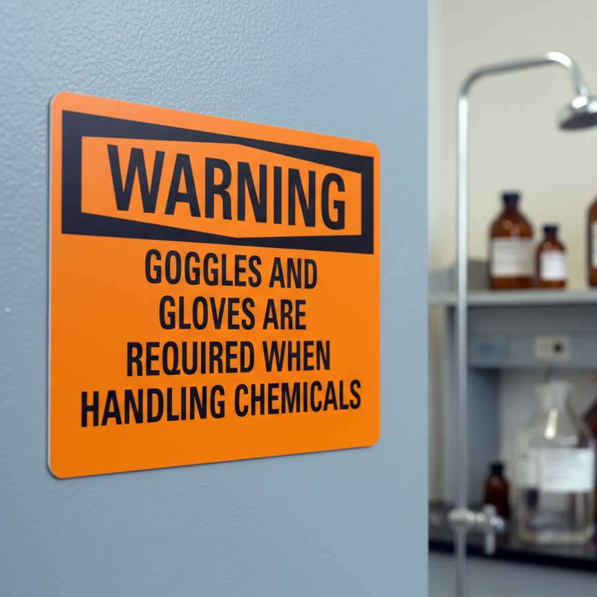 Warning Goggles And Gloves Are Required When
