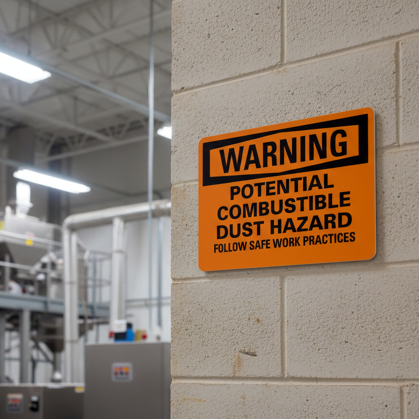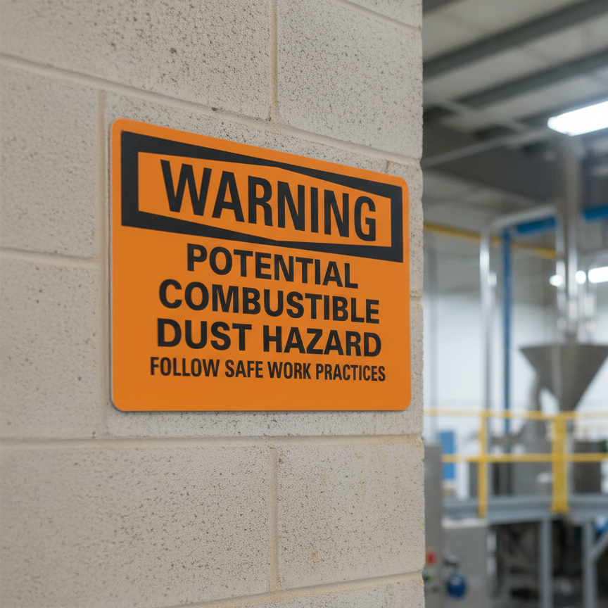 Warning Potential Combustible Dust Hazard Follow