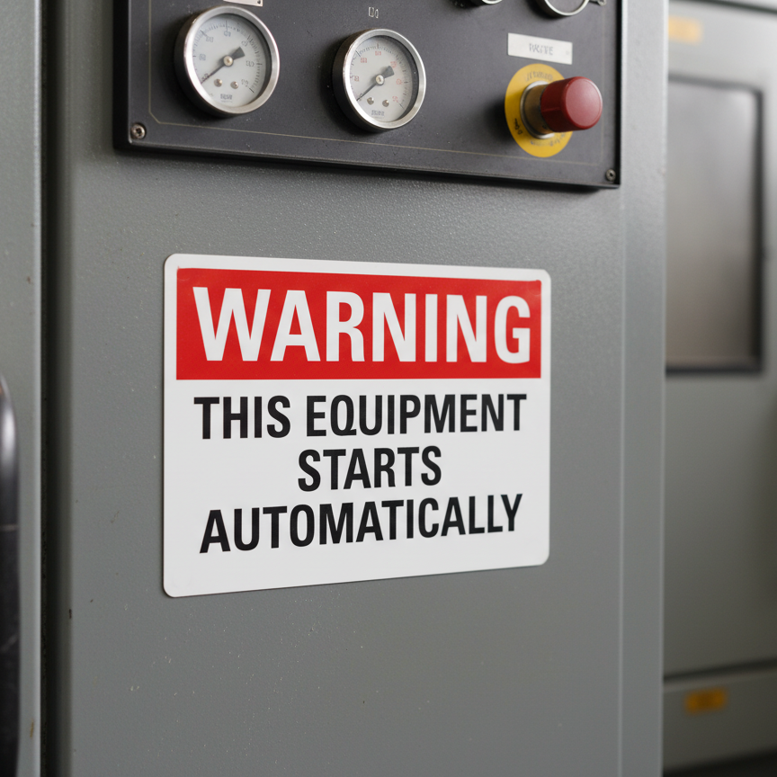 The Warning This Equipment Starts Automatically is designed to provide exceptional performance and longevity in a variety of environments. this sign component ensures strength and weather resistance, making it ideal for both indoor and outdoor applications. With a size specification of 10X7, 14X10, 7X5, it fits standard installation requirements while offering versatility for different mounting setups. Whether you’re updating an existing setup or building new signage, this item ensures a reliable, high-quality finish that represents your brand or message clearly and professionally.