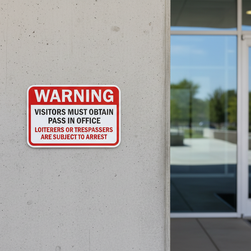 Warning Visitors Must Obtain Pass In Office