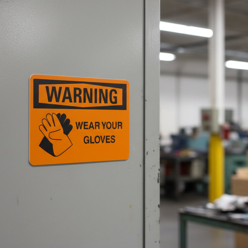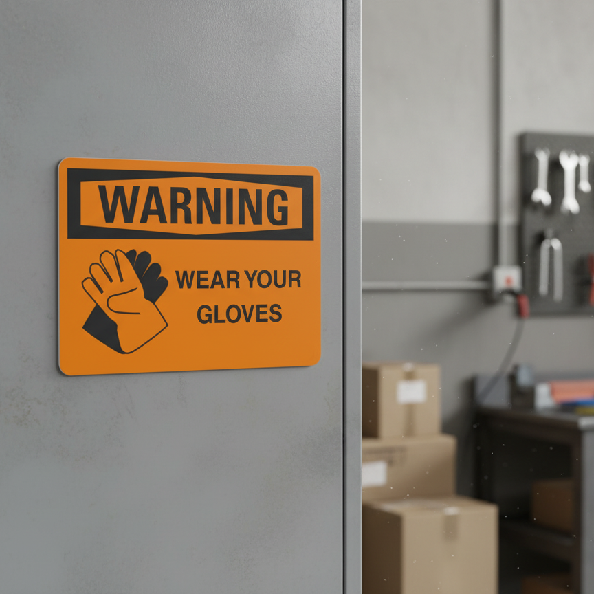 The Warning Wear your gloves is designed to provide exceptional performance and longevity in a variety of environments. this sign component ensures strength and weather resistance, making it ideal for both indoor and outdoor applications. With a size specification of 10X7, 14X10, 5X3.5, 7X5, it fits standard installation requirements while offering versatility for different mounting setups. Whether you’re updating an existing setup or building new signage, this item ensures a reliable, high-quality finish that represents your brand or message clearly and professionally.